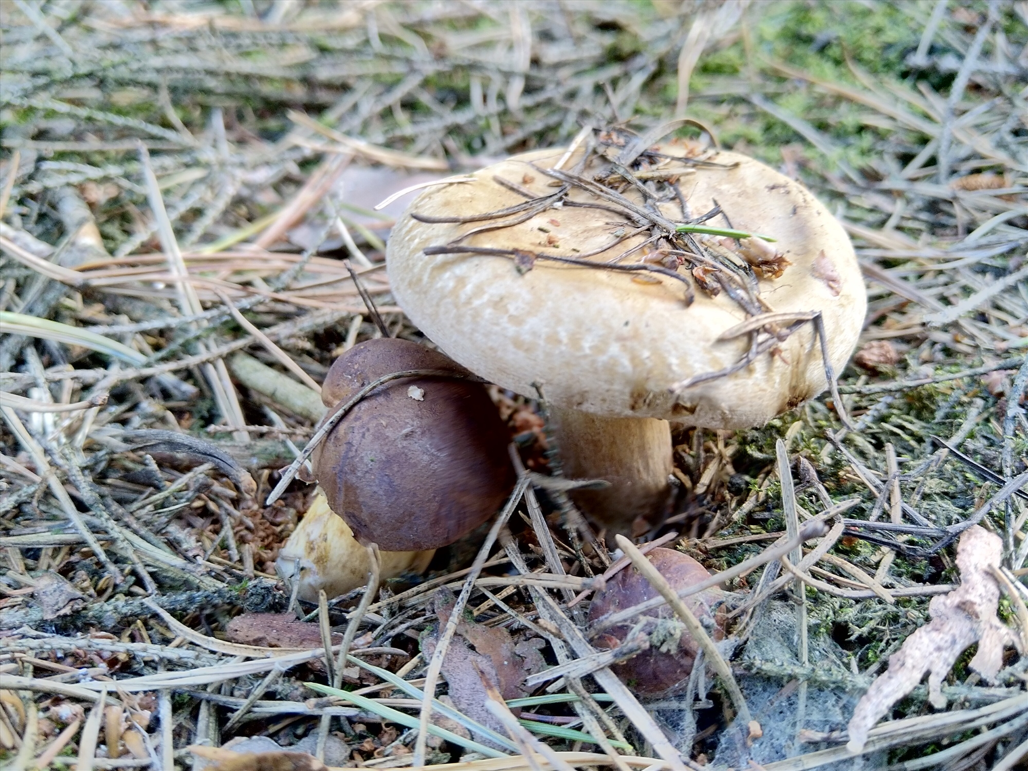 ... so Dich nebeneinander. Normalerweise gilt: Pilze die zusammen stehen sind von der selben Art. Hier aber nicht!