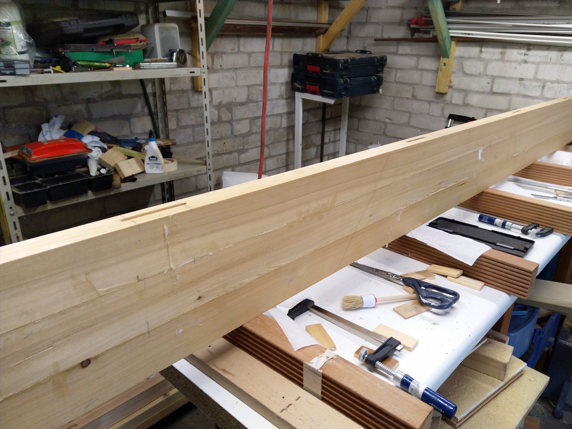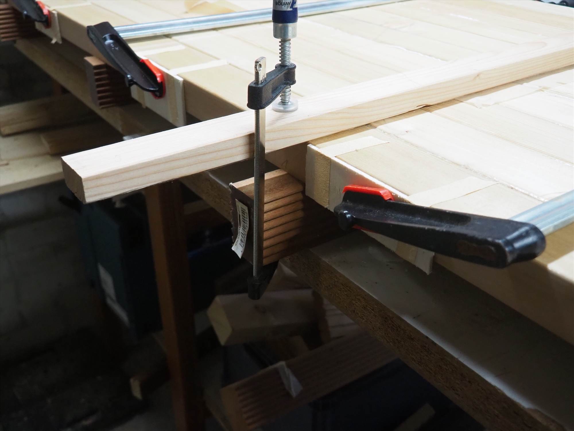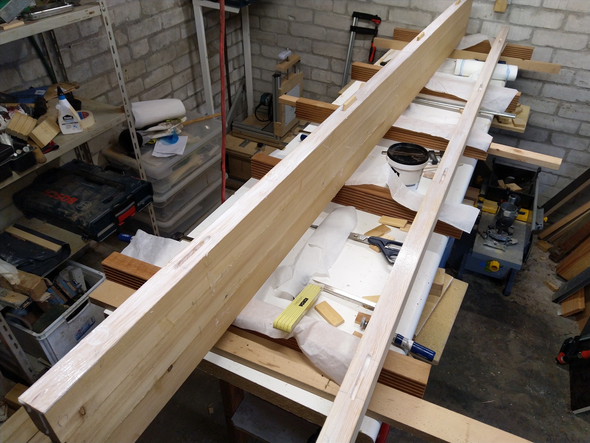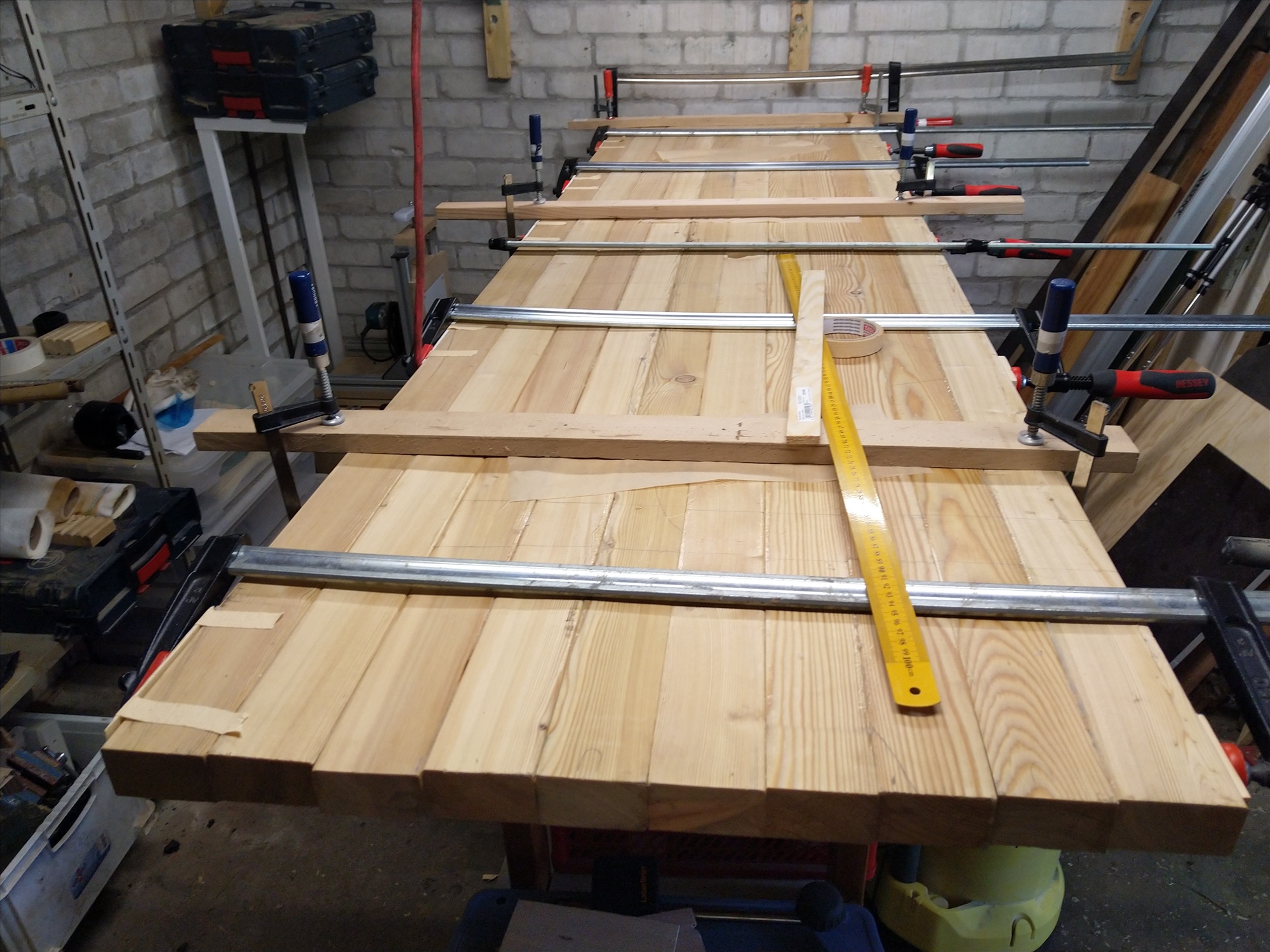 Da mein Schuppen zu klein ist und ich nur ein begrenzte Anzahl von Zwingen habe brauche ich drei Tage. Für jeden Abschnitt einen.