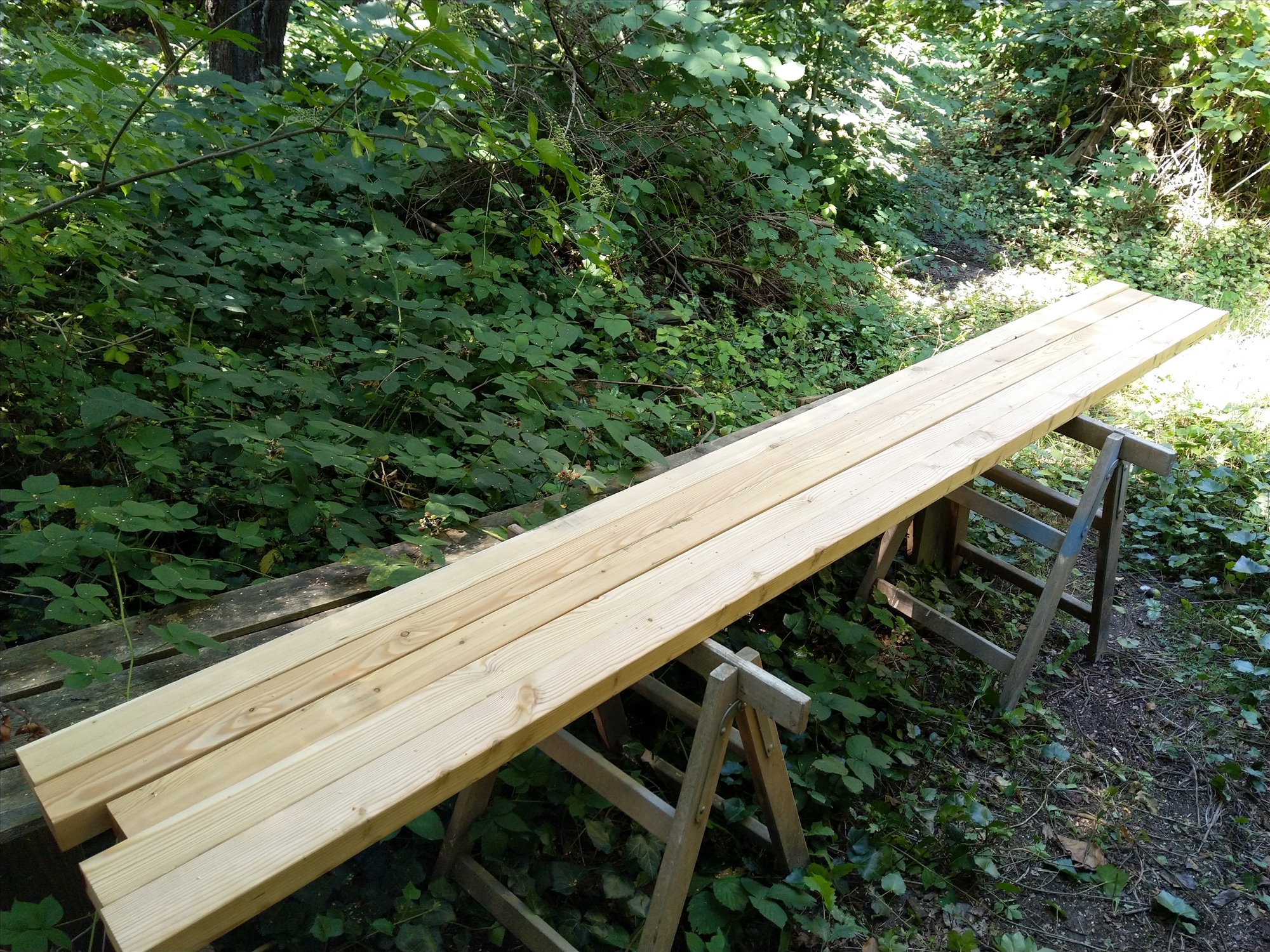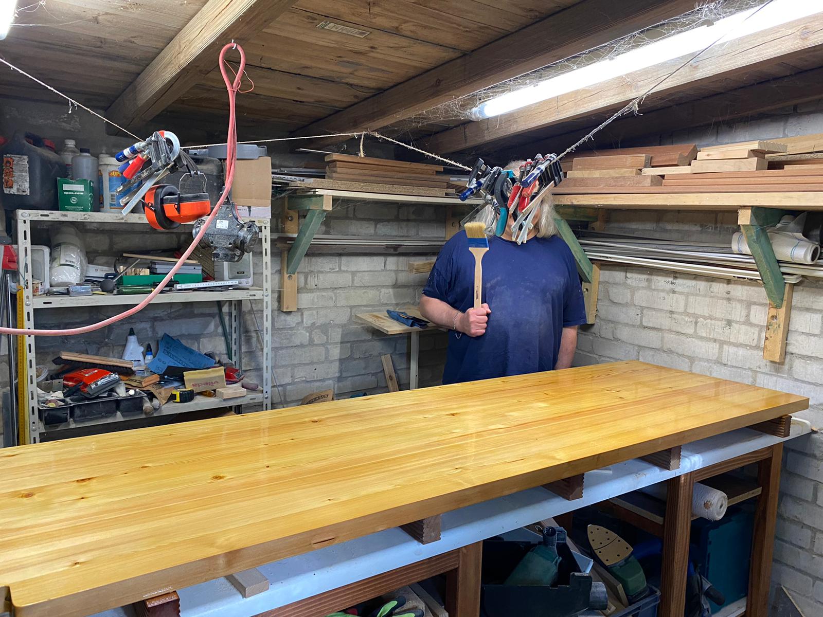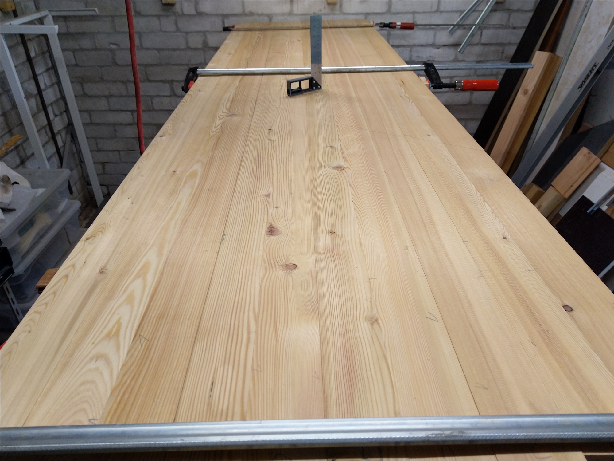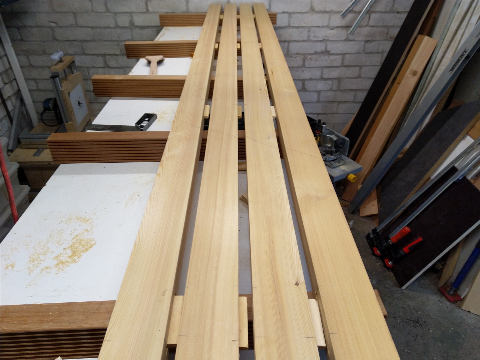 Da mein Schuppen zu klein ist und ich nur ein begrenzte Anzahl von Zwingen habe brauche ich drei Tage. Für jeden Abschnitt einen.