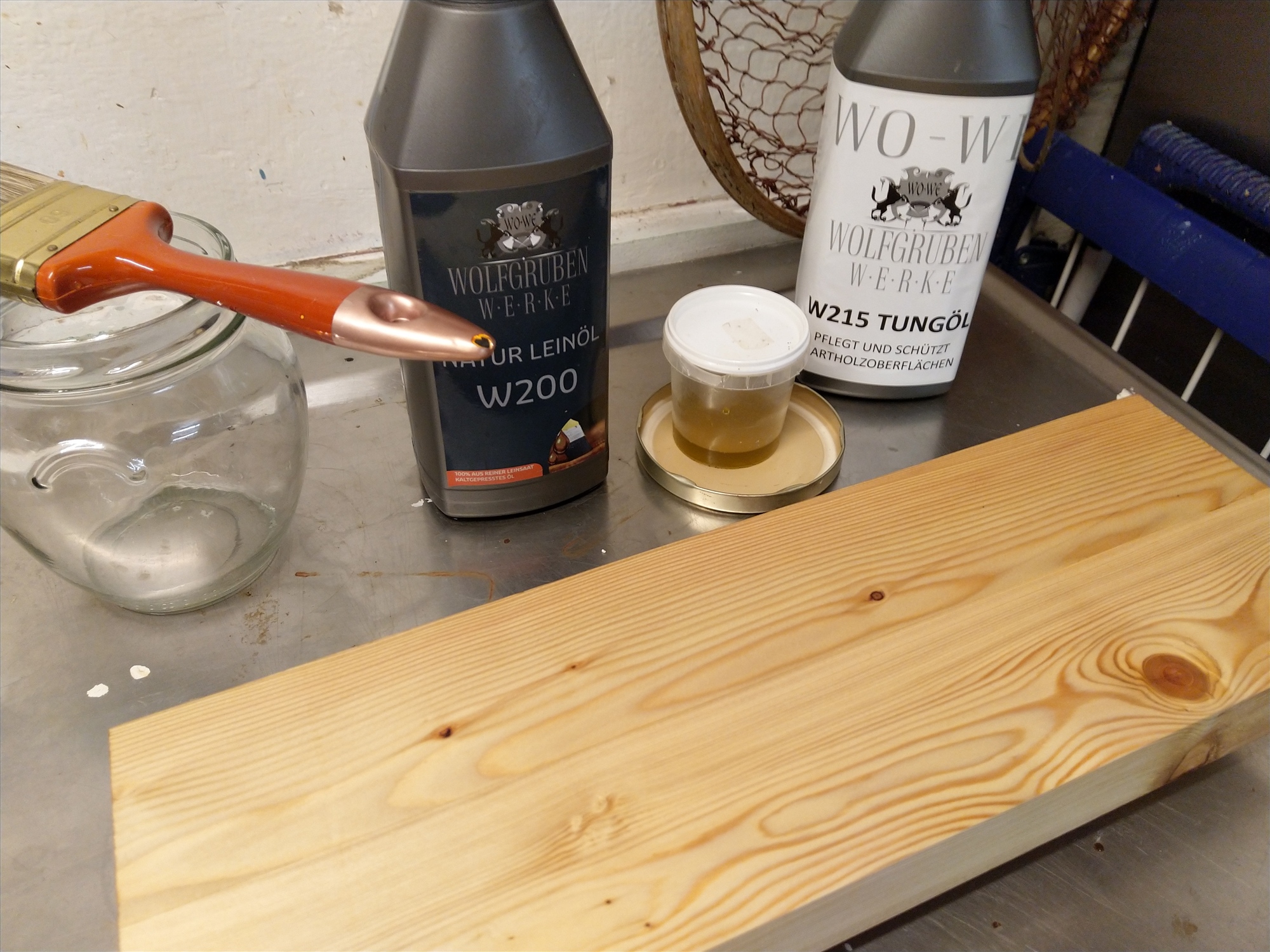 Parallel übe ich das ölen. Mit Leinöl und Tungöl.