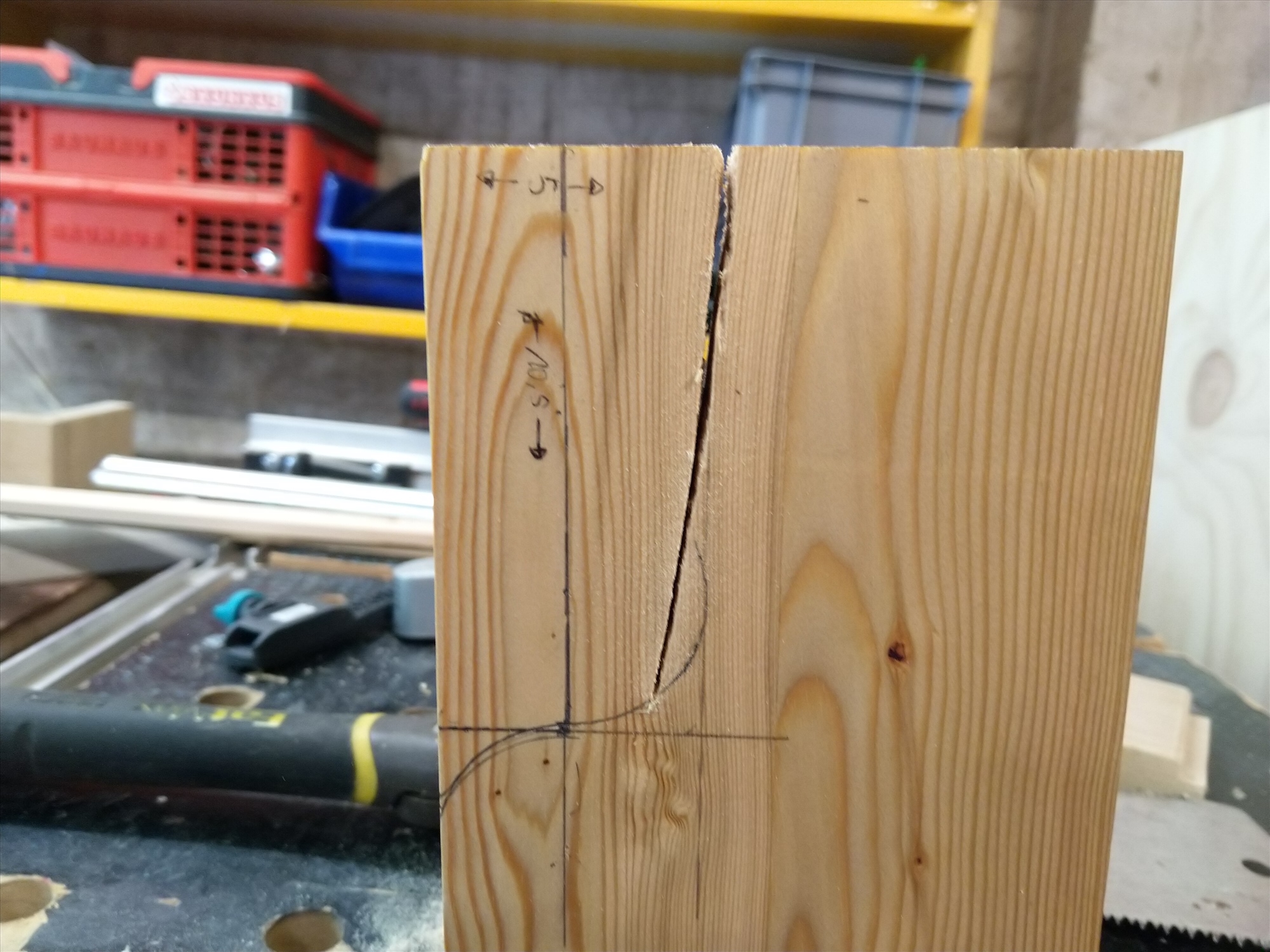 Finaler Zuschnitt: Ein Lamelle ist gerissen und die beiden Äste will ich loß werden, also links viel weg und rechts kaum was ...