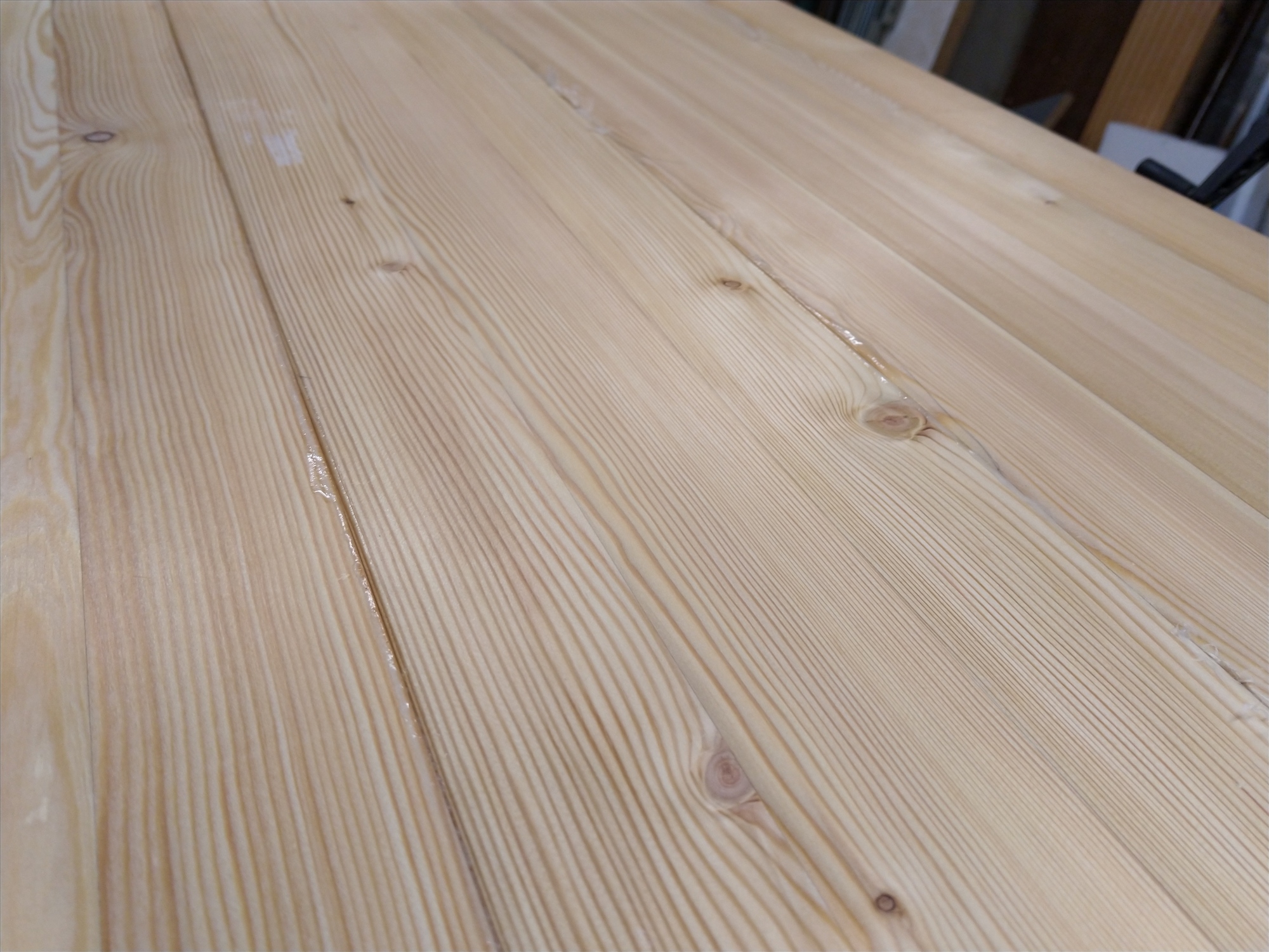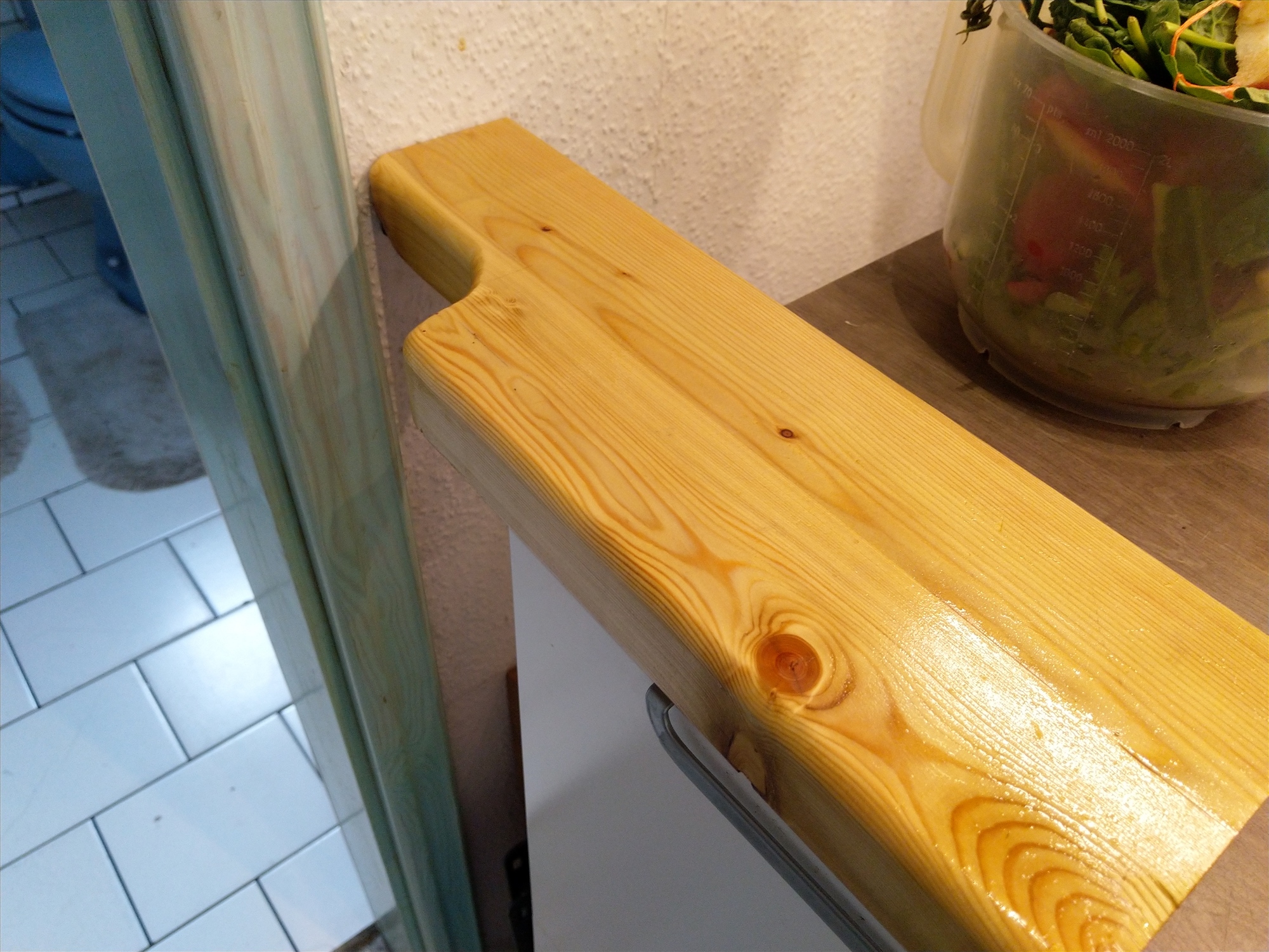 Dämlicherweise ist die von unten nicht gehobelt worden. Also immer noch mit runden Kanten versehen