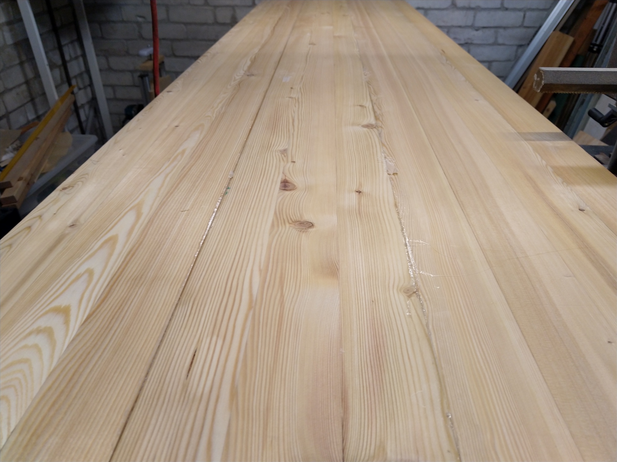 Was nicht schlimm ist ... dachte ich! Ich wollte sowieso noch einen netten Tischler fragen, ob er mir die ganze Platte nach dem fügen, durch den Hobel schiebt. Aber, Pustekuchen! 70 cm ist zu breit!! Ich habe zwei gefragt. Beide hatten keine Möglichkeit so was breites zu hobeln (max. 63cm)