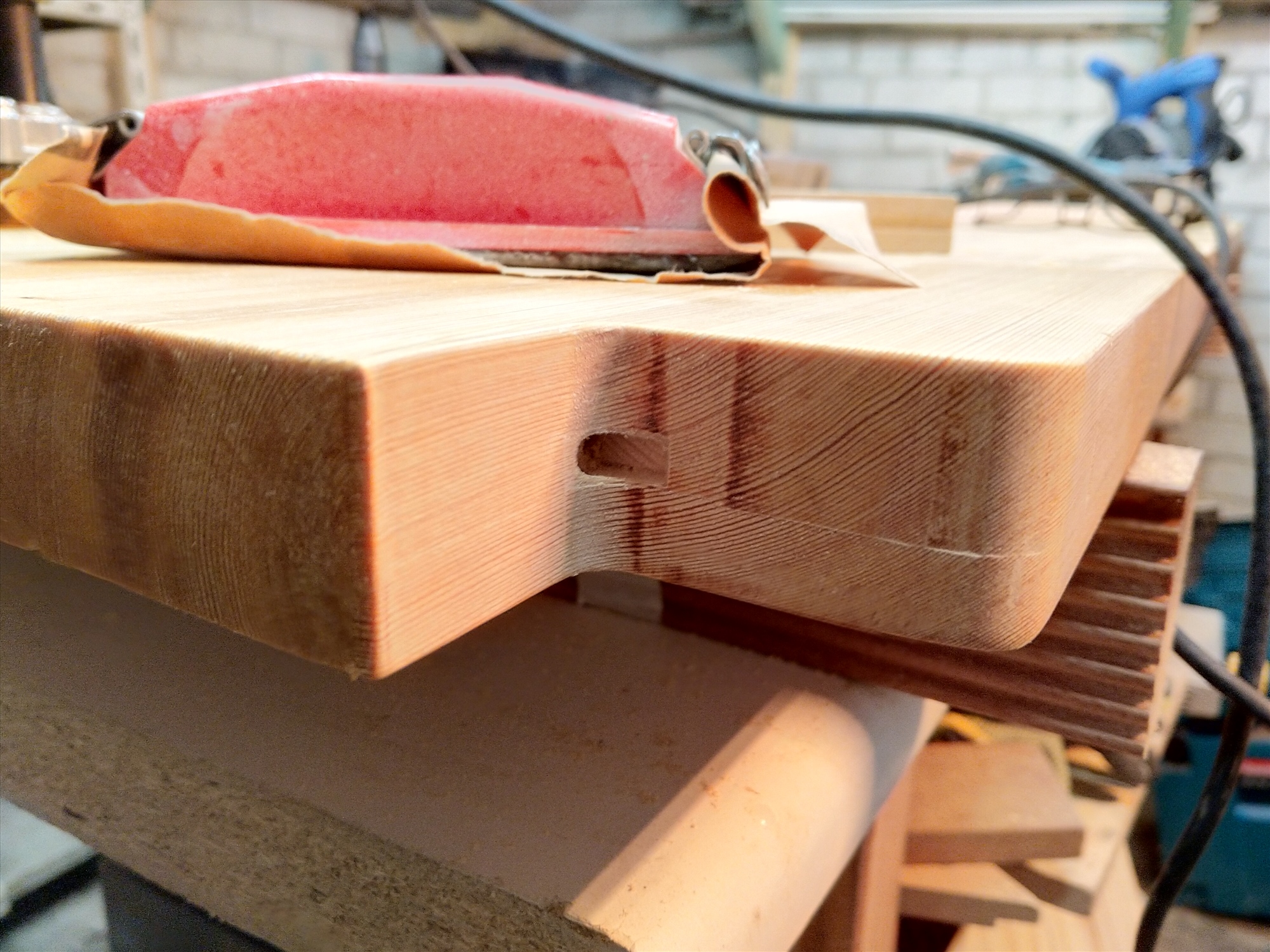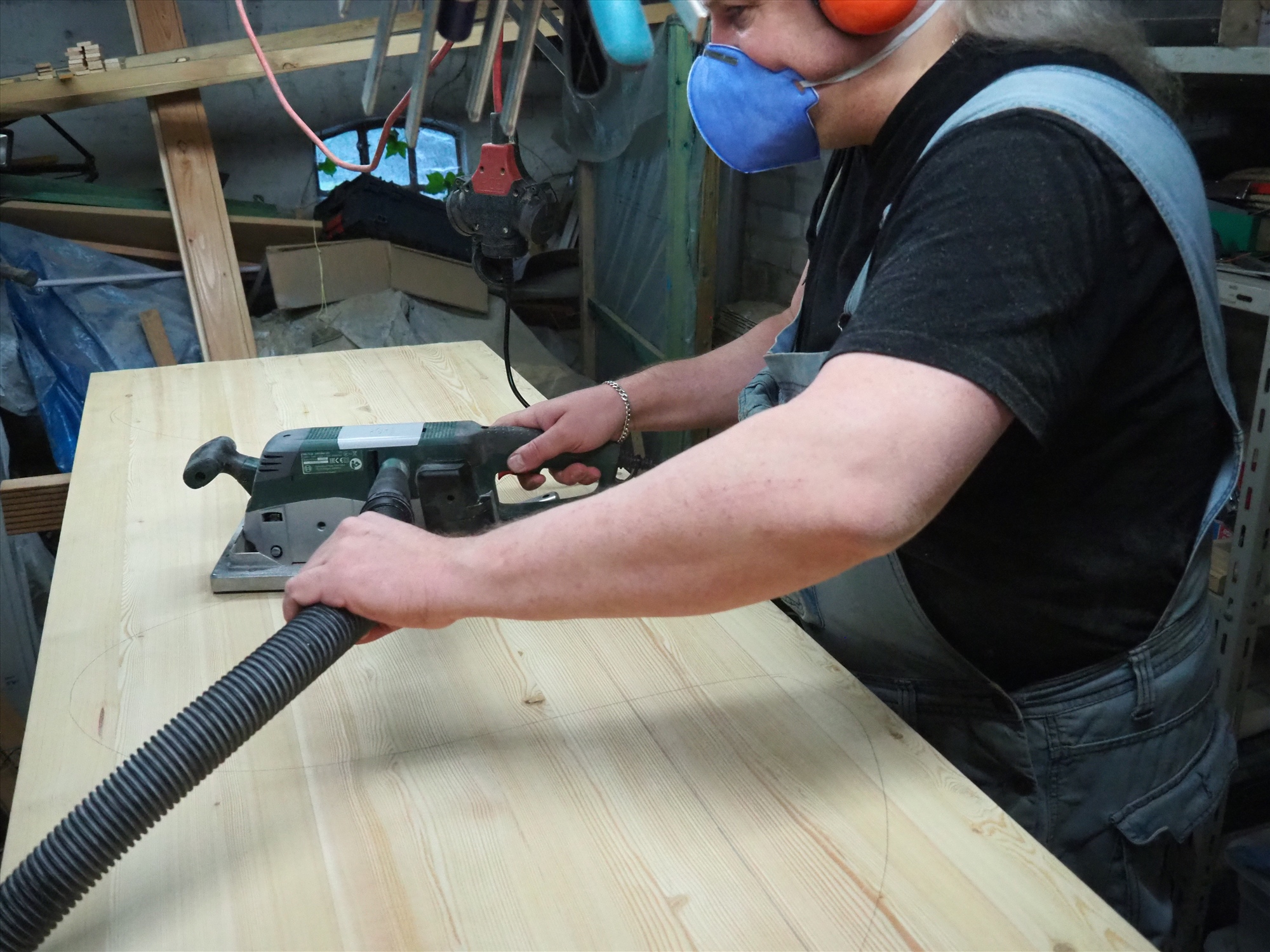 Dann Feinschliff. 320'ziger mit dem Schwingschleifer und 400 von Hand