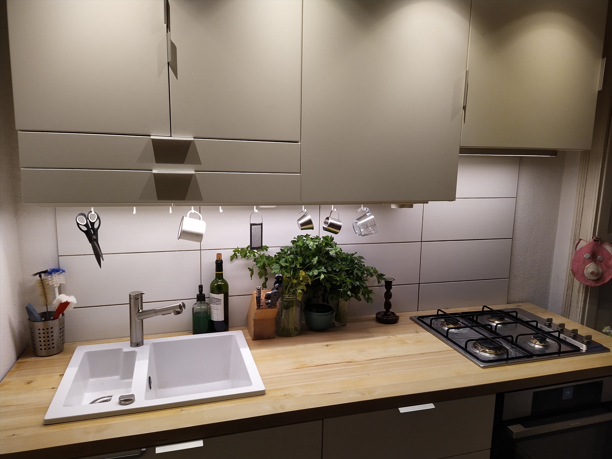 Küchenzeile umgebaut. Ich wage nicht zu schätzen, begonnen mit dem "umhängen" der Gas-Therme, wie lange dieser Umbau gedauert hat. 20 Jahre?